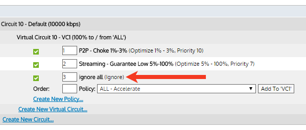 If a user wants to control some traffic and ignore the rest, they can configure the optimizer to control some traffic up-till 10Mpbs and "IGNORE" the rest. See the screenshot below: